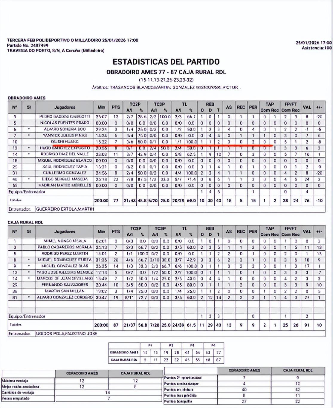 后来辽宁男篮经过多方运作和协调,又通过助教乌戈个人的关系,才将黄秋实和张峻豪运作到了西班牙丁级联赛打球,希望就此度过禁赛期。